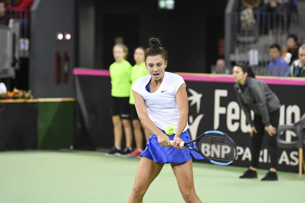 Meciul de tenis dintre Jaqueline Cristian (in imagine) si Veronika Kudermetova, din cadrul intalnirii Romania - Rusia, din play-off-ul Grupei Mondiale a Fed Cup, eveniment gazduit de Sala Polivalenta din Cluj-Napoca, sambata, 8 februarie 2020.© FOTO: Flaviu Buboi/ Sport Pictures