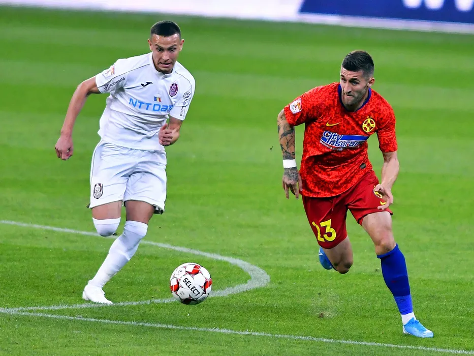 Valentin Costache si Ovidiu Popescu in meciul de fotbal dintre FCSB si CFR Cluj, contand pentru Liga 1 Casa Pariurilor, desfasurat pe Arena Nationala din Bucuresti, duminica 22 septembrie 2019. © FOTO:Razvan Pasarica/SPORT PICTURES