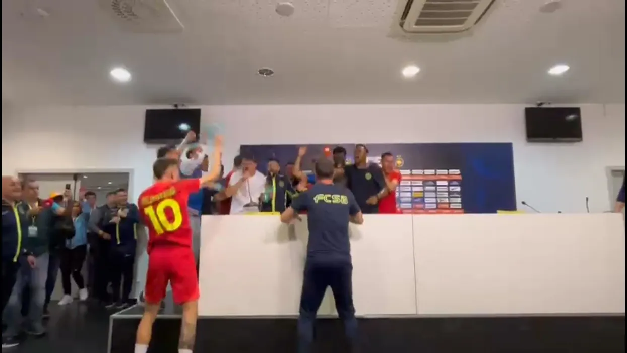 Să cânte manelele! Nebunia din vestiar și sala de conferințe, după ce FCSB a devenit campioana României: fotbaliștii lui Gigi Becali au petrecut ca Inter Milano. VIDEO