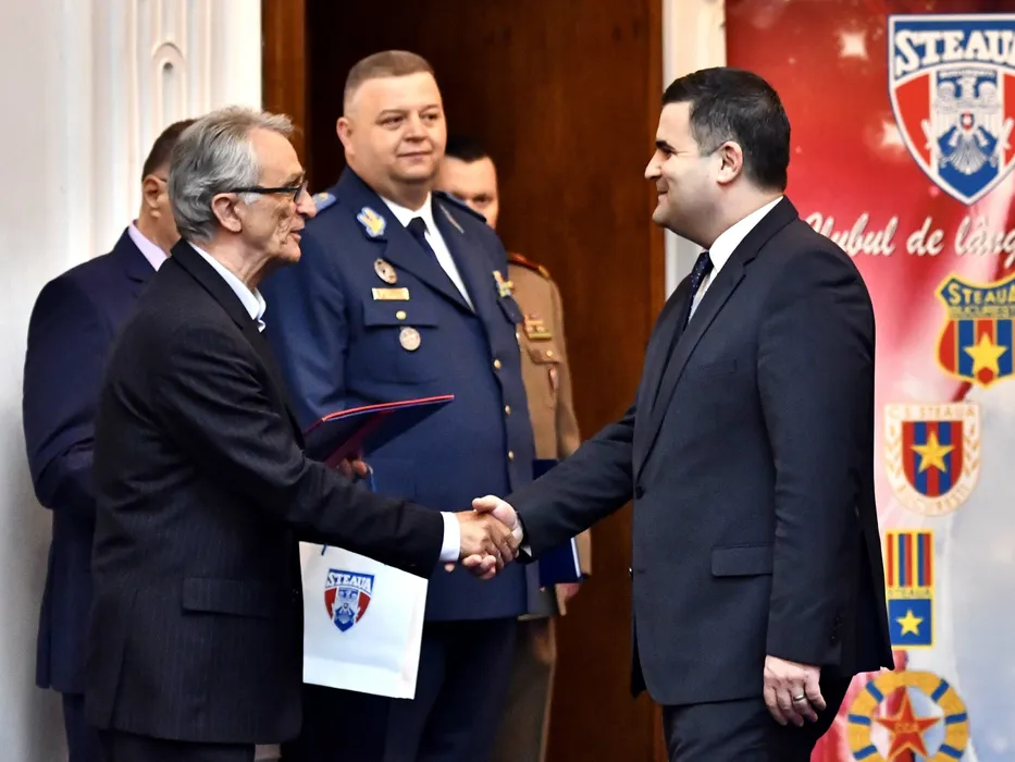 Cristian Gatu si Gabriel Beniamin Les in cadrul festivitatii de aniversare a 40 de ani de la castigarea Cupei Campionilor Europeni de catre echipa de handbal masculin Steaua Bucuresti, desfasurata in sala Mihai Viteazul a Ministerului Apararii Nationale din Bucuresti, vineri 28 aprilie 2017.Razvan Pasarica/SPORT PICTURES