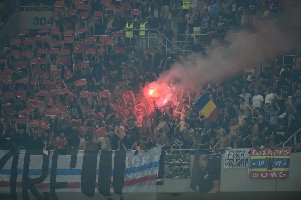 ȘAH MAT! În tribune, derby-ul a fost câștigat de Dinamo. FOTO „Câinii” au răspuns GENIAL la coregrafia steliștilor! Cum și-au ironizat rivalii
