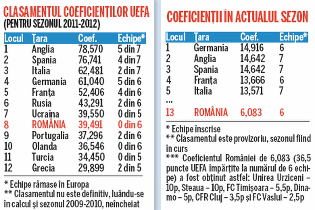 Salvați de Unirea!** Tot cu 6 echipe în cupele europene