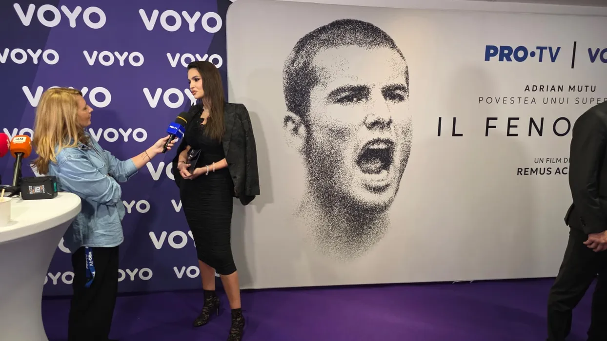 Sandra Mutu, apariție răvășitoare la premiera filmului „Il Fenomeno – Povestea unui superstar”: ședință foto alături de „Briliant” în fața tricoului naționalei. FOTO