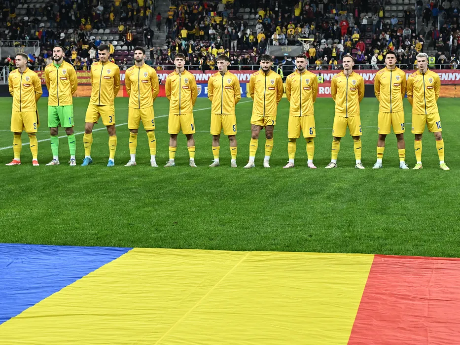 Fotbalistii romani la startul meciului de fotbal dintre Romania U21 si Elvetia U21, contand pentru Preliminariile UEFA EURO 2025, desfasurat pe Superbet Arena Giulesti din Bucuresti, marti 15 octombrie 2024. © FOTO:Razvan Pasarica/SPORT PICTURES