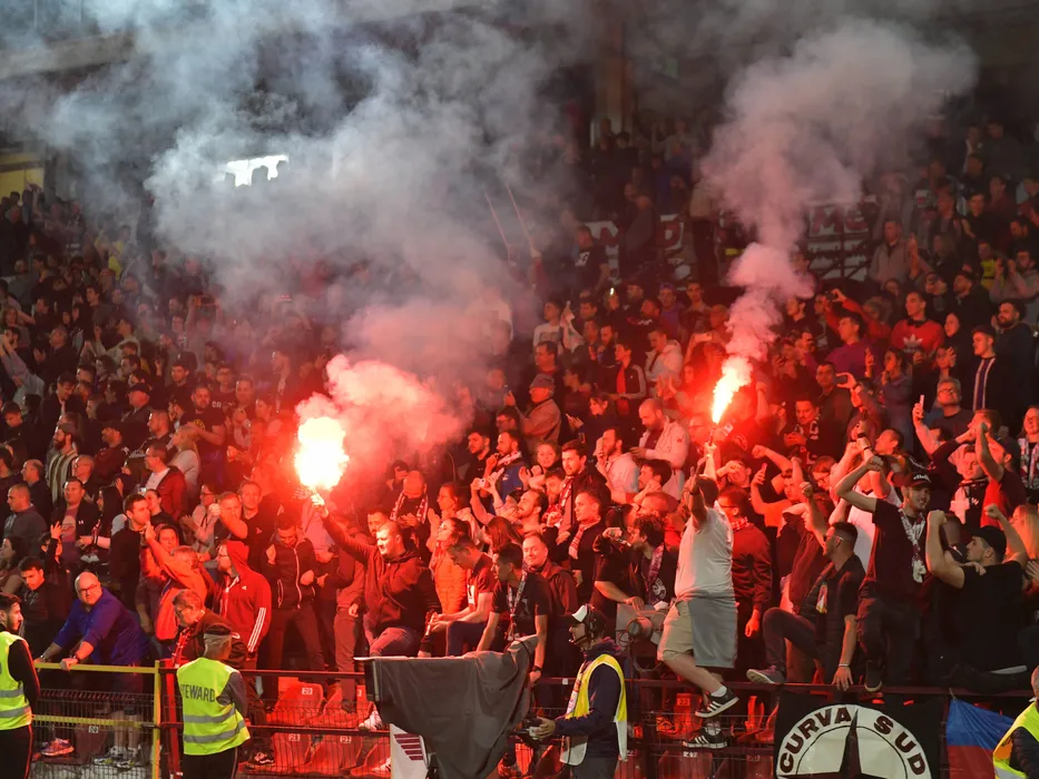 Bucurie clujeana a spectatorilor dupa castigarea campionatului in urma meciului de fotbal dintre CFR Cluj si Universitatea Craiova, contand pentru Play-off-ul Ligii 1 Casa Pariurilor, desfasurat pe Stadionul CFR Dr. Constantin Radulescu din Cluj Napoca, duminica 15 mai 2022. © FOTO:Razvan Pasarica/SPORT PICTURES