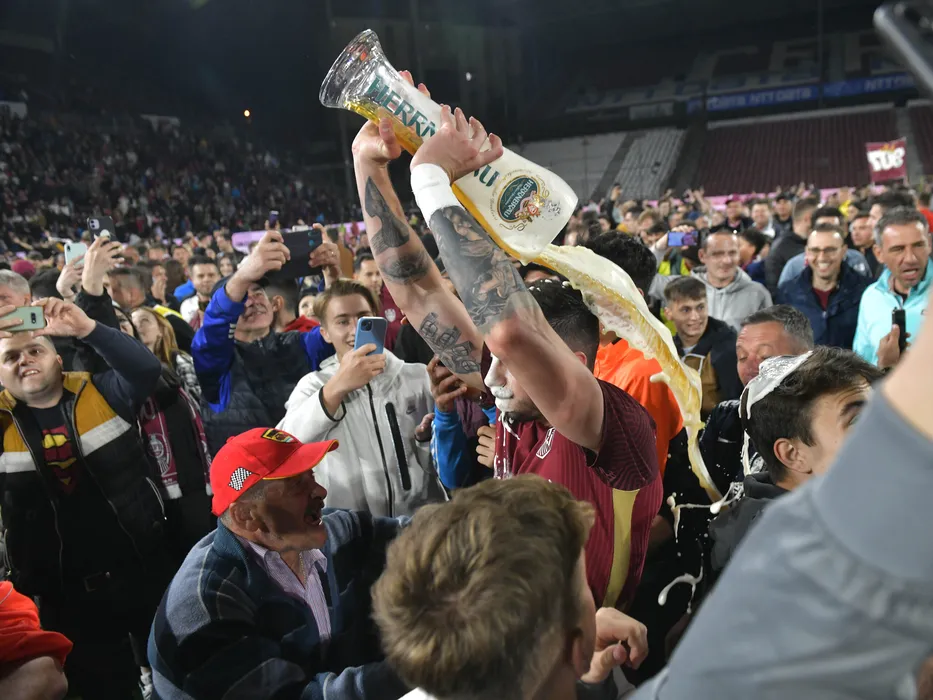 Bucurie clujeana cu Andonie Andrei Burca dupa castigarea campionatului in urma meciului de fotbal dintre CFR Cluj si Universitatea Craiova, contand pentru Play-off-ul Ligii 1 Casa Pariurilor, desfasurat pe Stadionul CFR Dr. Constantin Radulescu din Cluj Napoca, duminica 15 mai 2022. © FOTO:Razvan Pasarica/SPORT PICTURES
