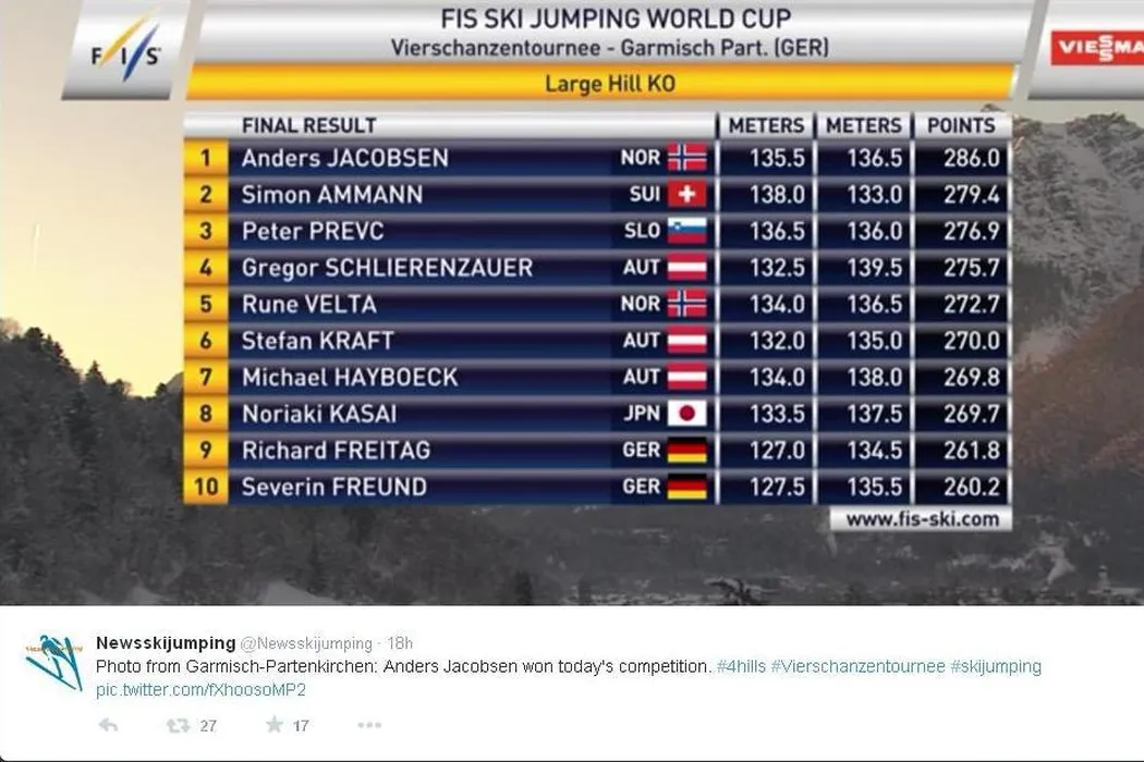 SĂ‚RITURI CU SCHIURILE | Surprizele continuă în Turneul celor Patru Trambuline. Anders Jacobsen a câștigat detașat la Garmisch-Partenkirchen