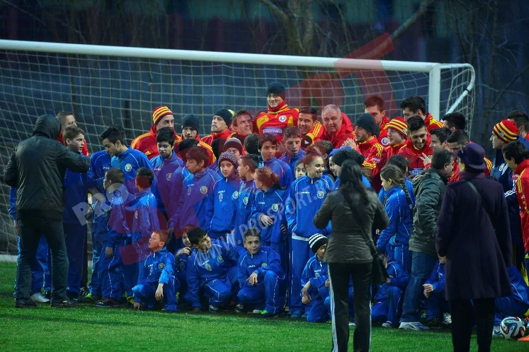 Șase tricolori s-au pregătit separat, Mățel s-a accidentat. FOTO – Elevii lui Pițurcă au fost asaltați de copii la antrenament