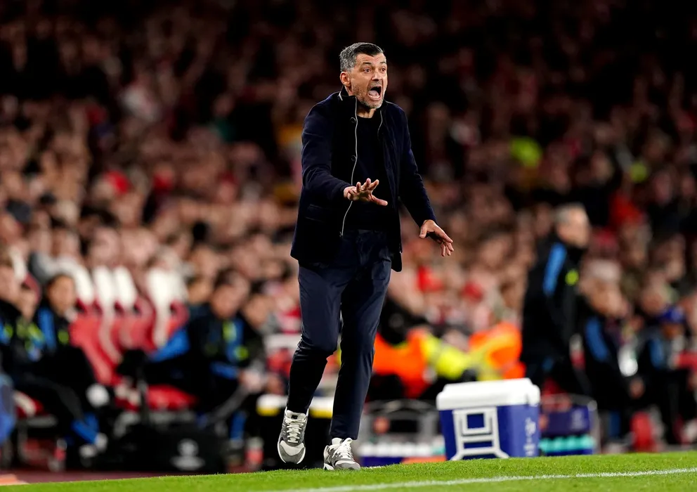FC Porto manager Sergio Conceicao gestures on the touchline during the UEFA Champions League Round of 16, second leg match at the Emirates Stadium, London. Picture date: Tuesday March 12, 2024.,Image: 856297852, License: Rights-managed, Restrictions: Use subject to restrictions. Editorial use only, no commercial use without prior consent from rights holder., Model Release: no