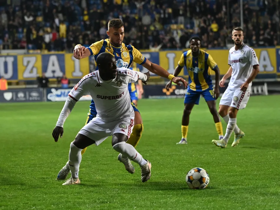 Christopher Braun si Adi Marian Chica Rosa in meciul dintre Petrolul Ploiesti si Rapid Bucuresti, contand pentru Superliga Superbet, desfasurat pe Stadionul Ilie Oana din Ploiesti, sambata 27 septembrie 2025. © FOTO:Razvan Pasarica/SPORT PICTURES