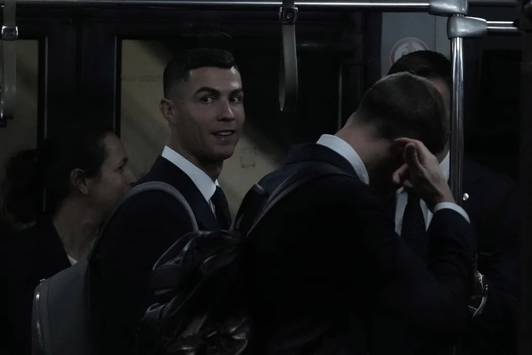 Cristiano Ronaldo of Portugal's national soccer team arrives at Hamad International airport in Doha, Qatar, Friday, Nov. 18, 2022 ahead of the upcoming World Cup. Portugal will play the first match in the World Cup against Ghana on Nov. 23. (AP Photo/Hassan Ammar)