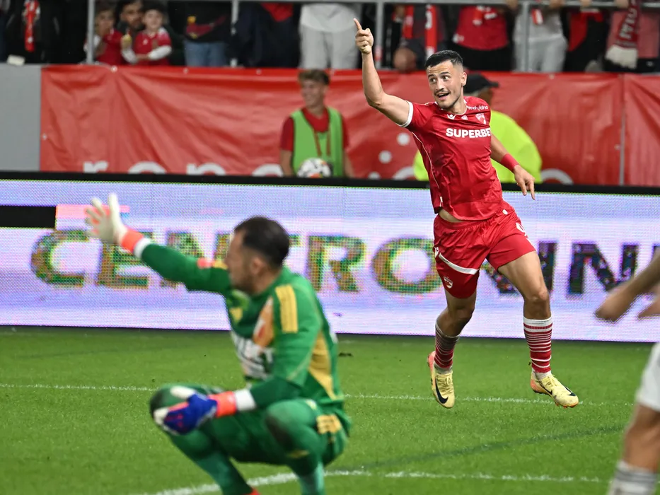 Selmani Astrit se bucură dupa un gol marcat in meciul de fotbal dintre Dinamo Bucuresti si FC Botosani, din cadrul Superligii Superbet, desfasurat pe Stadionul National Arcul de Triumf din Bucuresti, vineri 27 septembrie 2024. © FOTO:Razvan Pasarica/SPORT PICTURES