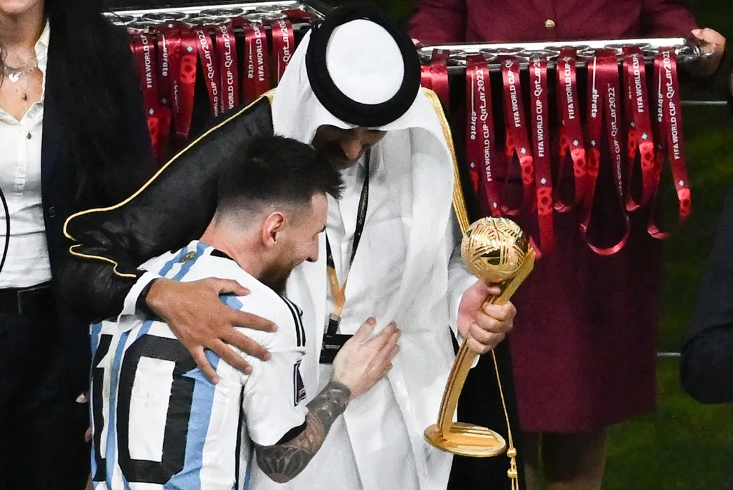 Lionel Messi of Argentina and Tamim bin Hamad Al Thani the Emir of Qatar during the FIFA World Cup Qatar 2022 Final match between Argentina and France at Lusail Stadium on December 18, 2022. Photo by Laurent Zabulon/ABACAPRESS.COM