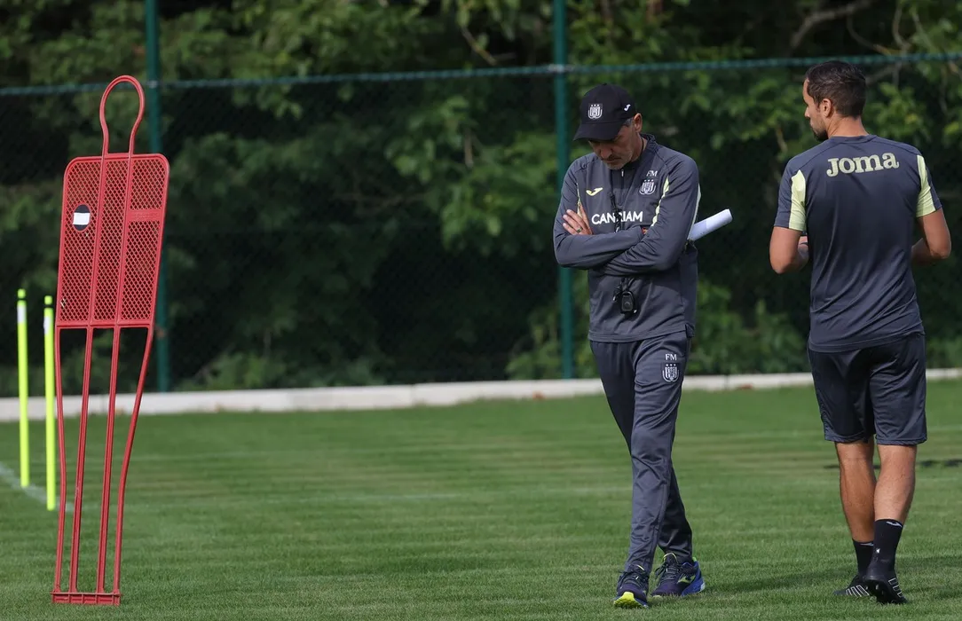 Anderlecht head coach Felice Mazzu pictured during a training session of Belgian soccer team RSC Anderlecht, Wednesday 07 September 2022 in Brussels, in preparation of Tomorrow's game against Danish Silkeborg on the opening day of the Uefa Conference League group stage.
