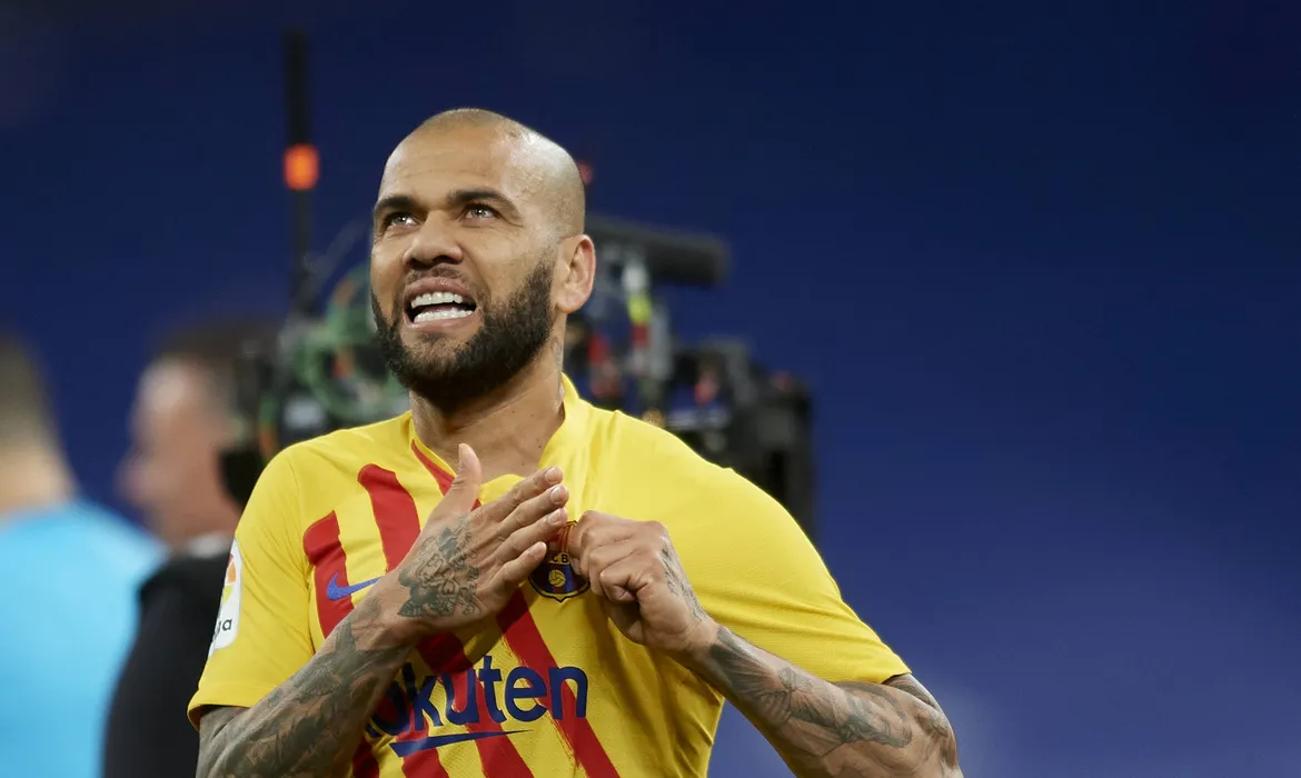 Real Madrid CF v FC Barcelona, Barca - La Liga Santander Dani Alves of Barcelona celebrates victory after during the La Liga Santander match between Real Madrid CF and FC Barcelona at Estadio Santiago Bernabeu on March 20, 2022 in Madrid, Spain. Madrid Spain PUBLICATIONxNOTxINxFRA Copyright: xJosexBretonx originalFilename:breton-realmadr220320_npmdz.jpg