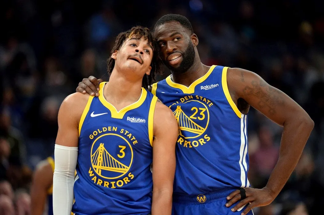 FILE - In this Nov. 19, 2019, file photo, Golden State Warriors guard Jordan Poole (3) and forward Draymond Green (23) talk during a break in the first half of an NBA basketball game against the Memphis Grizzlies in Memphis, Tenn.,Image: 576236914, License: Rights-managed, Restrictions: This content is intended for editorial use only. For other uses, additional clearances may be required.