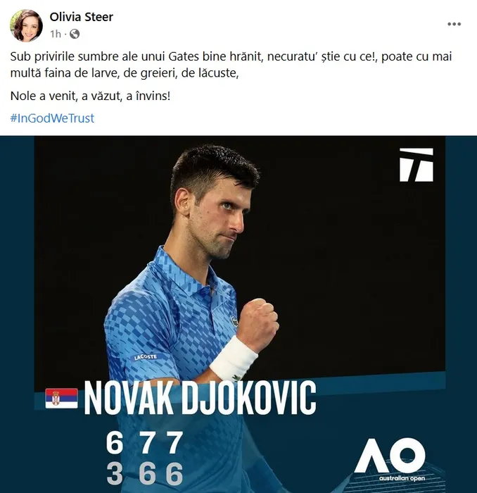 Scandal uriaș după ce Bill Gates a mers la finala lui Novak Djokovic de la Australian Open! „Coșmarul” antivacciniștilor, făcut praf de Olivia Steer: „S-a hrănit cu greieri și lăcuste!”