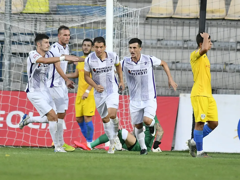 Bucurie pitesteana cu Grigore Turda,Vasile Buhaescu, Andrei Prepelita si Denis Brinzan in meciul de fotbal dintre Petrolul Ploiesti si FC Arges, contand pentru play-off-ul de promovare a Ligii a-2-a Casa Pariurilor, disputat fara spectatori pe Stadionul Ilie Oana din Ploiesti, marti 28 iulie 2020. © FOTO:Razvan Pasarica/SPORT PICTURES