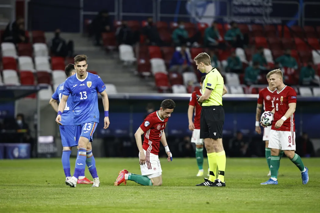 Scandalos! Ungaria a marcat cu România, după un placaj ca la rugby la Denis Haruț! Andras Csonka, „împins” în poarta lui Andrei Vlad de arbitrul Lawrence Visser