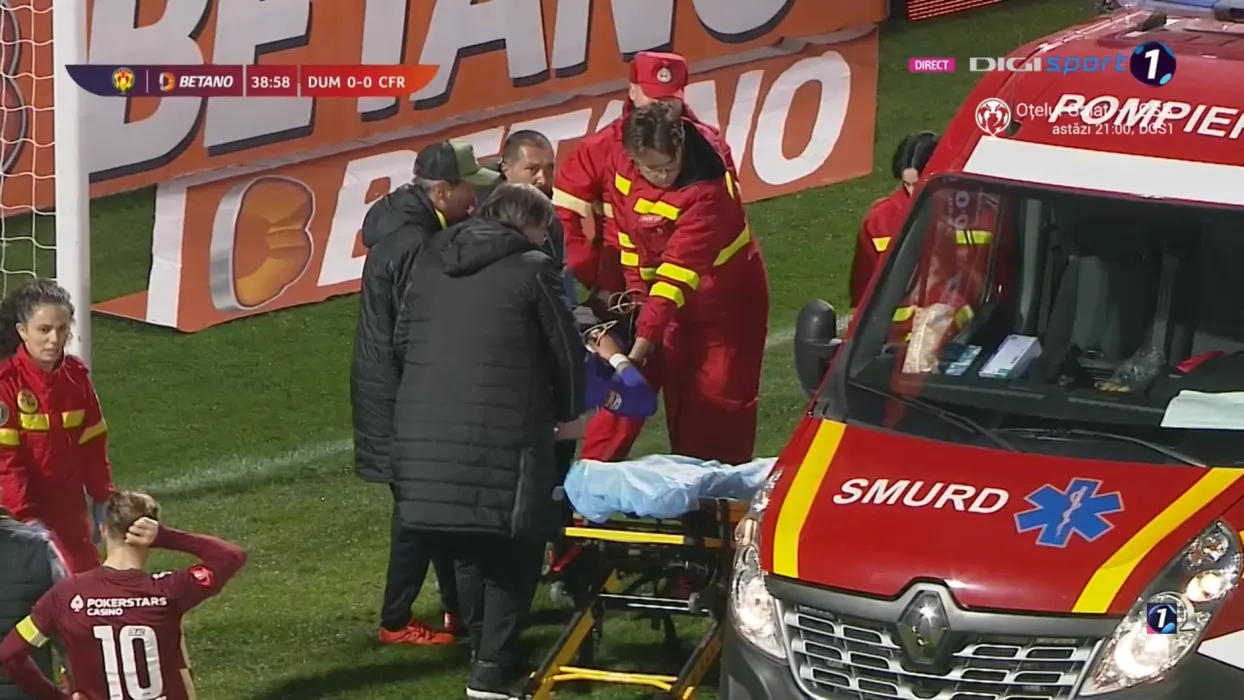 Scene de coșmar la CSC Dumbrăvița – CFR Cluj! Portarul gazdelor a rămas inconștient pe gazon și a fost transportat de urgență la spital cu ambulanța!