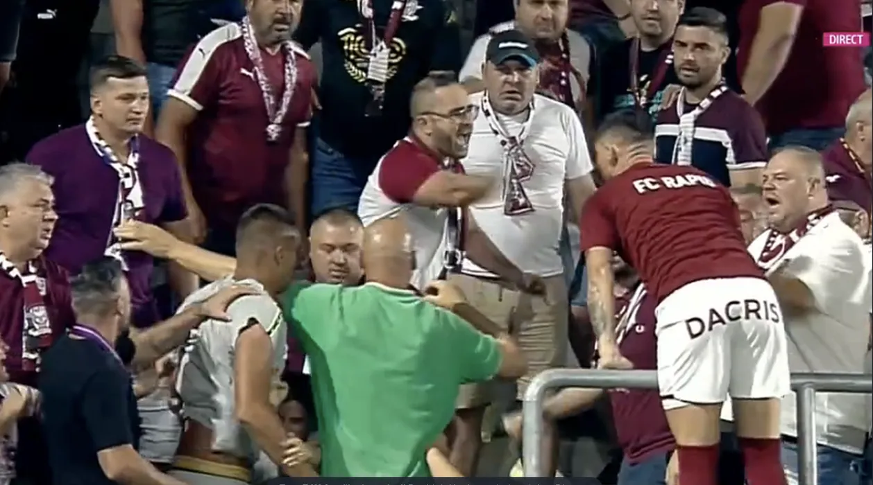 Scene halucinante pe Giulești! Fanii Rapidului s-au luat la bătaie între ei, Cristi Săpunaru a sărit în tribune pentru a-i despărți | VIDEO