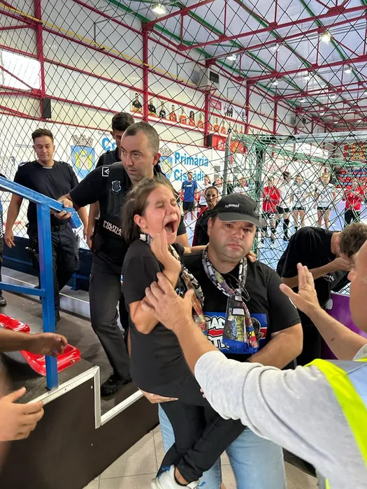 Scene incredibile la meciul de handbal Măgura Cisnădie – SCM Rm. Vâlcea! Jandarmii au fost deranjați de bucuria oaspeților și au folosit gazul lacrimogen! Victima agresiunii: fetița șefului de galerie | FOTO&VIDEO