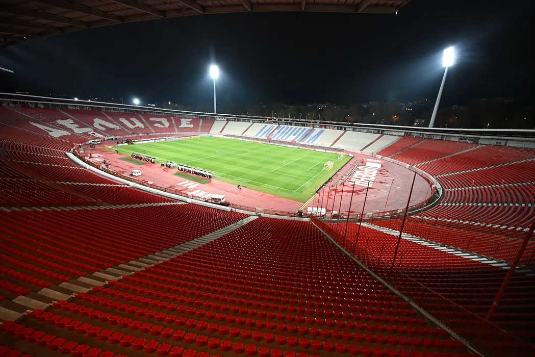 Imagine de ansamblu cu Stadionul Rajko Mitić din Belgrad surprinsa la conferinta de presa a echipei FCSB de dinaintea meciului impotriva celor de la Steaua Rosie Belgrad, din cadrul UEFA Europa League, miercuri 26 noiembrie 2025. © FOTO:Razvan Pasarica/SPORT PICTURES