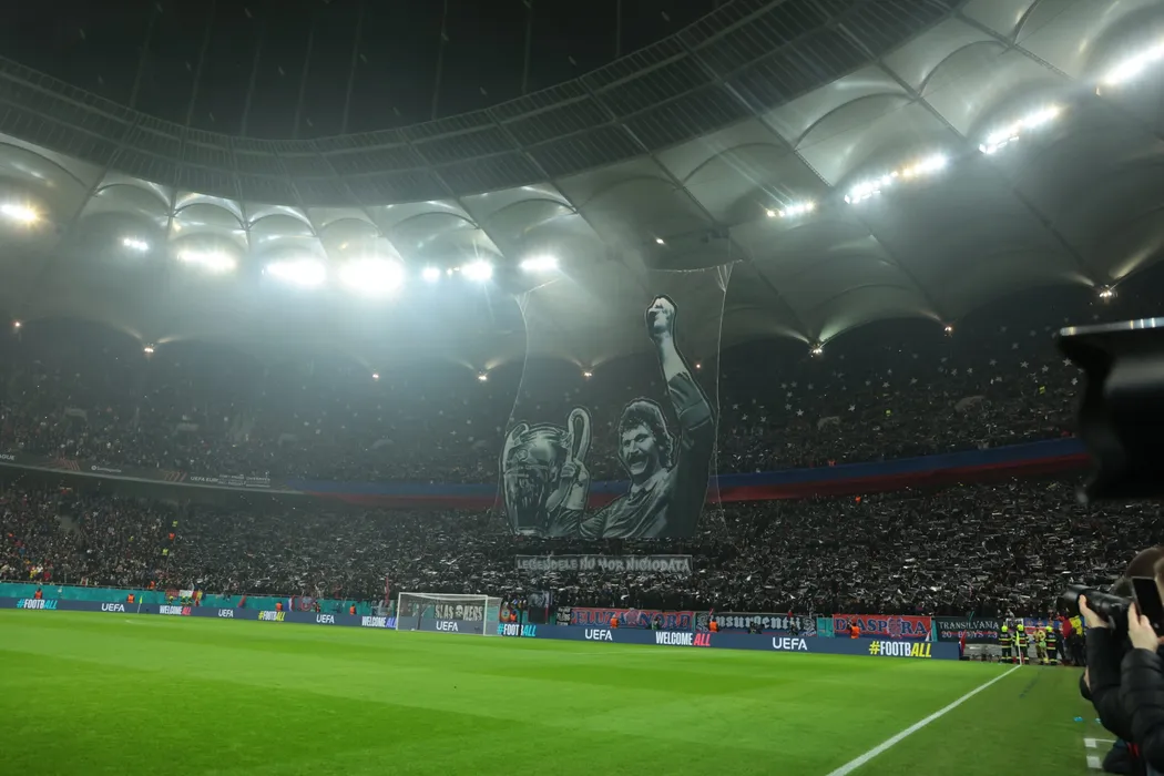 Scenografia cu Helmut Duckadam va face înconjurul Europei. Ce mesaj au afișat suporterii FCSB la meciul cu Manchester United