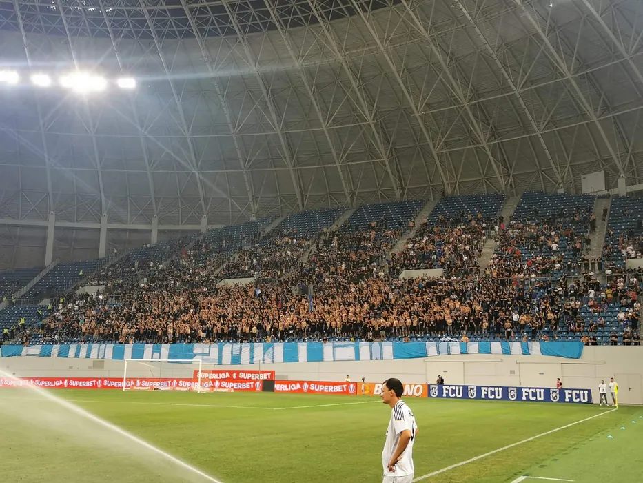 Scenografie atipică în derby-ul Craiovei! Ce banner uriaș au putut să afișeze ultrașii lui FC U | GALERIE FOTO