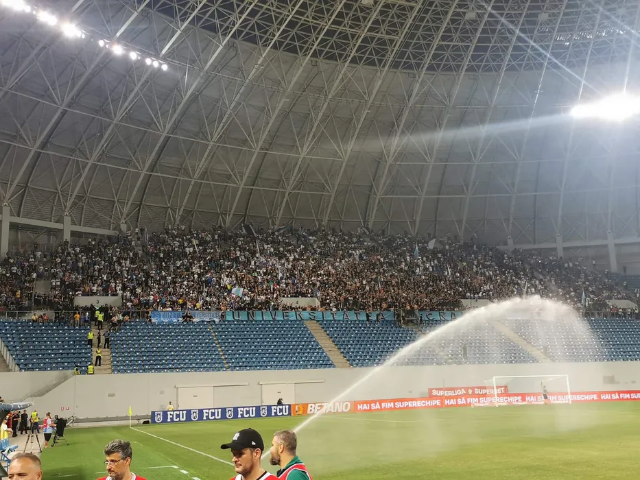 Scenografie atipică în derby-ul Craiovei! Ce banner uriaș au putut să afișeze ultrașii lui FC U | GALERIE FOTO