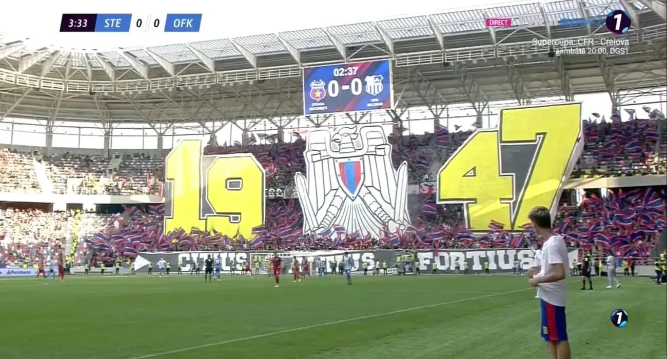 Scenografii speciale la 74 de ani de la înființarea CSA Steaua! Peluza Sud a făcut o atmosferă incendiară în Ghencea | GALERIE FOTO