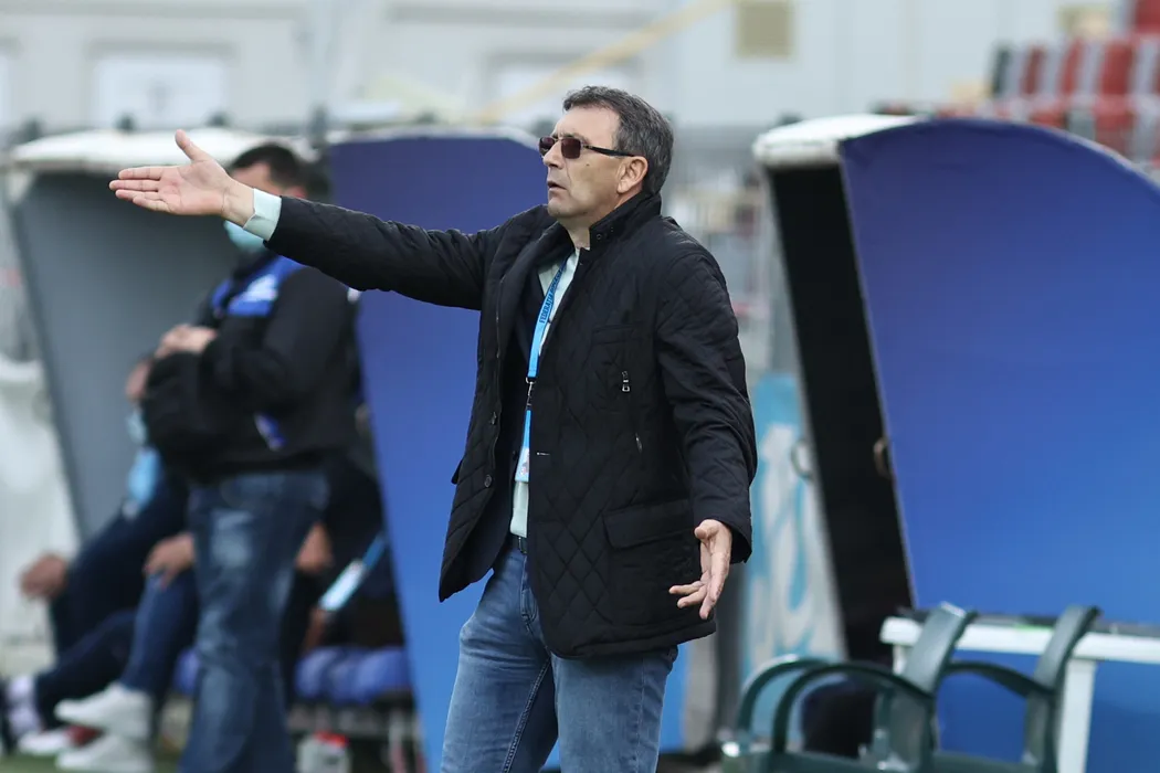 Eugen Neagoe, antrenorul echipei AFC Astra Giurgiu, urmareste meciul de fotbal contra formatiei FC Arges din etapa a 3-a a play-out-ului Ligii 1, disputat pe stadionul Marin Anastasovici, sambata, 24 aprilie 2021. GEORGE FILIP / MEDIAFAX FOTO