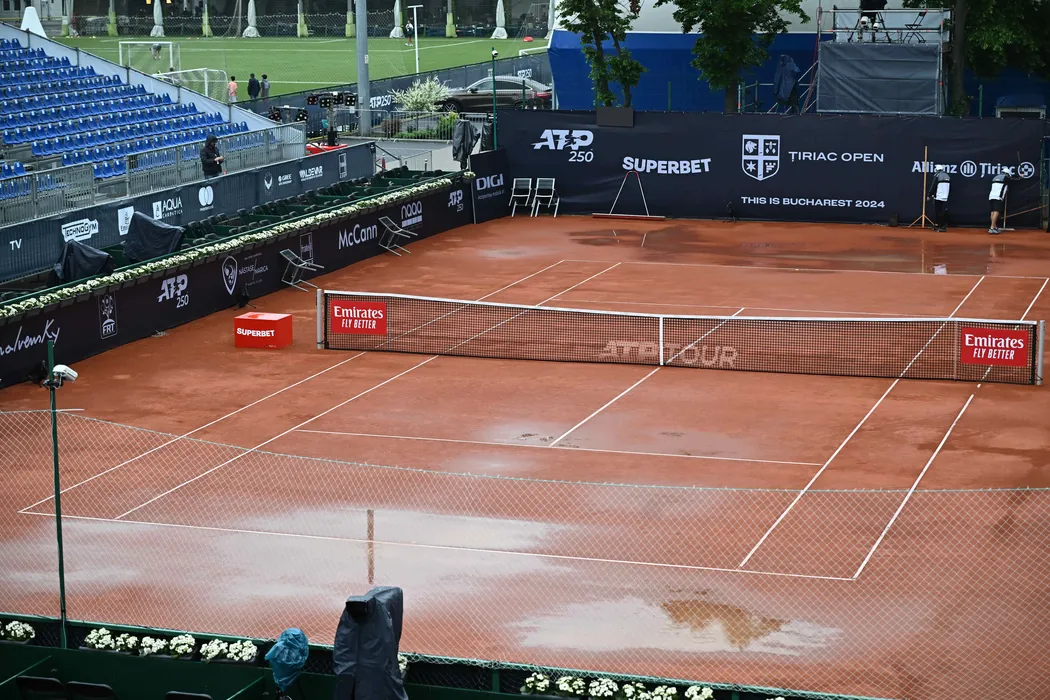 Terenul central plin da balti fotografiat la turneul de tenis Tiriac Open ATP 250, desfasurat la Nastase & Marica Sports Club din Bucuresti, miercuri 17 aprilie 2024. © FOTO: Răzvan PĂSĂRICĂ/SPORT PICTURES