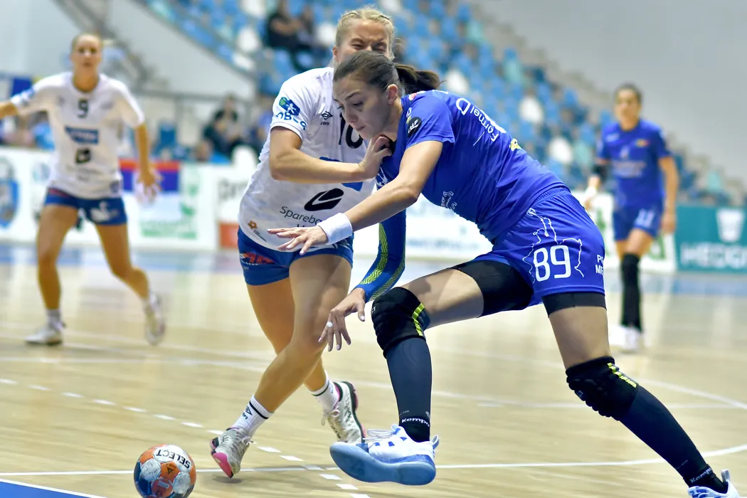 Burcea Zamfir Florina (D), de la SCM Craiova, arunca la poarta in meciul de handbal feminin contra echipei Tertnes Bergen, din turul 2 preliminar al Cupei EHF, disputat la Sala Polivalenta din Craiova, duminica, 20 octombrie 2019. REMUS BADEA / MEDIAFAX FOTO