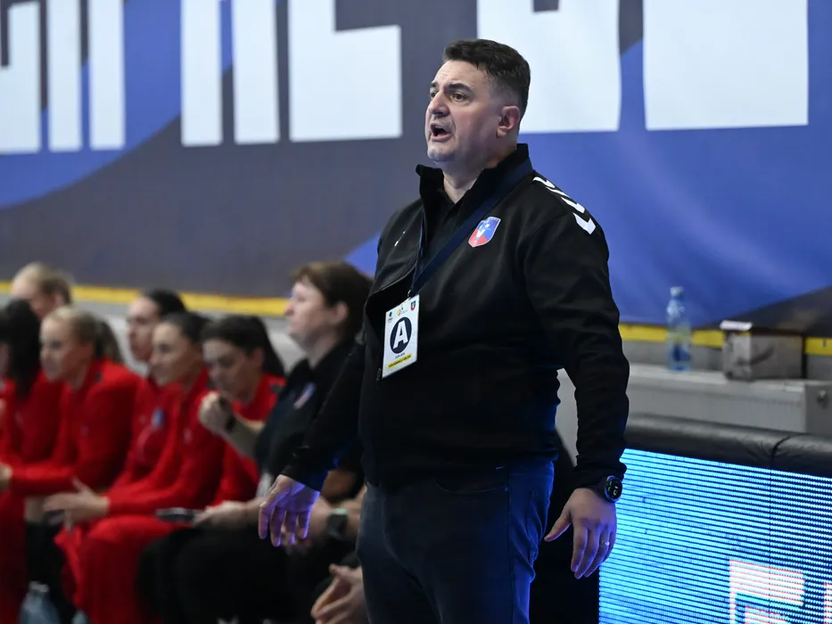 Constantin Florentin Pera reactioneaza in meciul de handbal feminin dintre CSM Bucuresti si SCM Ramnicu Valcea, din cadrul Ligii Florilor, desfasurat in Sala Apollo din Bucuresti, joi 9 octombrie 2025. © FOTO:Razvan Pasarica/SPORT PICTURES
