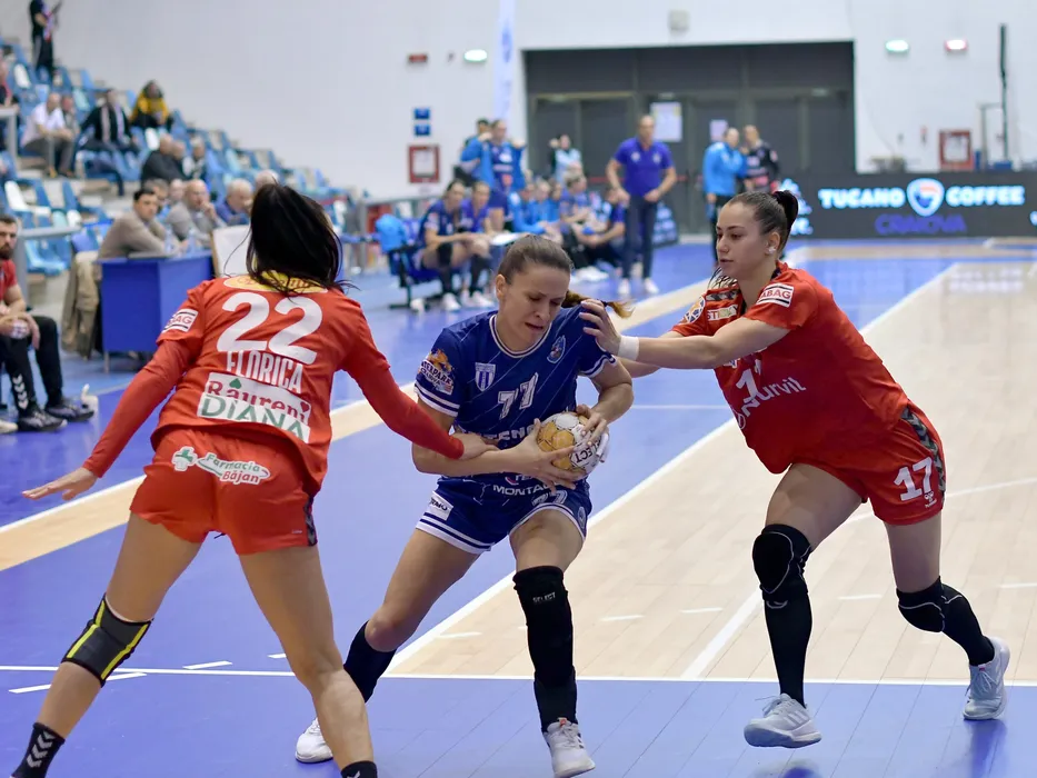 Valentina Blazevic și Ioana Rebeca Necula în meciul de handbal feminin dintre SCM Univeristatea Craiova și SCM Râmnicu Vâlcea, contând pentru Liga Florilor MOL, desfășurat în Sala Polivalentă din Craiova, miercuri 13 noiembrie 2024. © FOTO: Remus BADEA/SPORT PICTURES