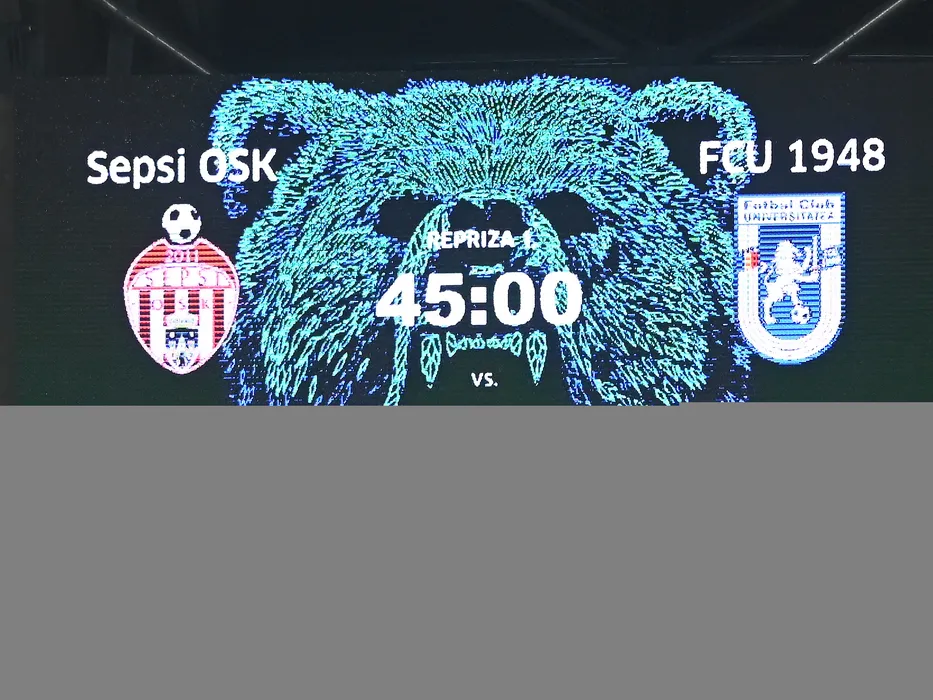 Tablela de marcaj la pauza meciului de fotbal dintre Sepsi OSK Sfantu Gheorghe si FC U Craiova, contand pentru Superliga Superbet, desfasurat pe Sepsi Arena din Sfantu Gheorghe, vineri 16 martie 2023. © FOTO:Razvan Pasarica/SPORT PICTURES