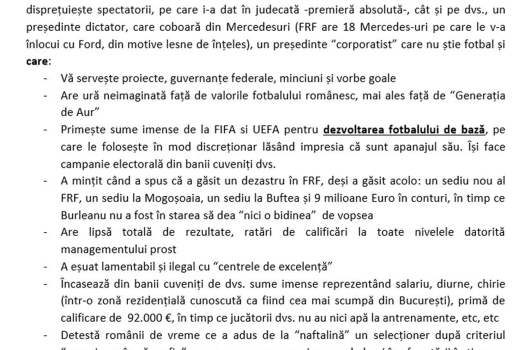 Scrisoarea lui Pompiliu Popescu pentru cei care vor vota președintele FRF: „Să refuze umilința totală la care vrea să-i supună Burleanu!”