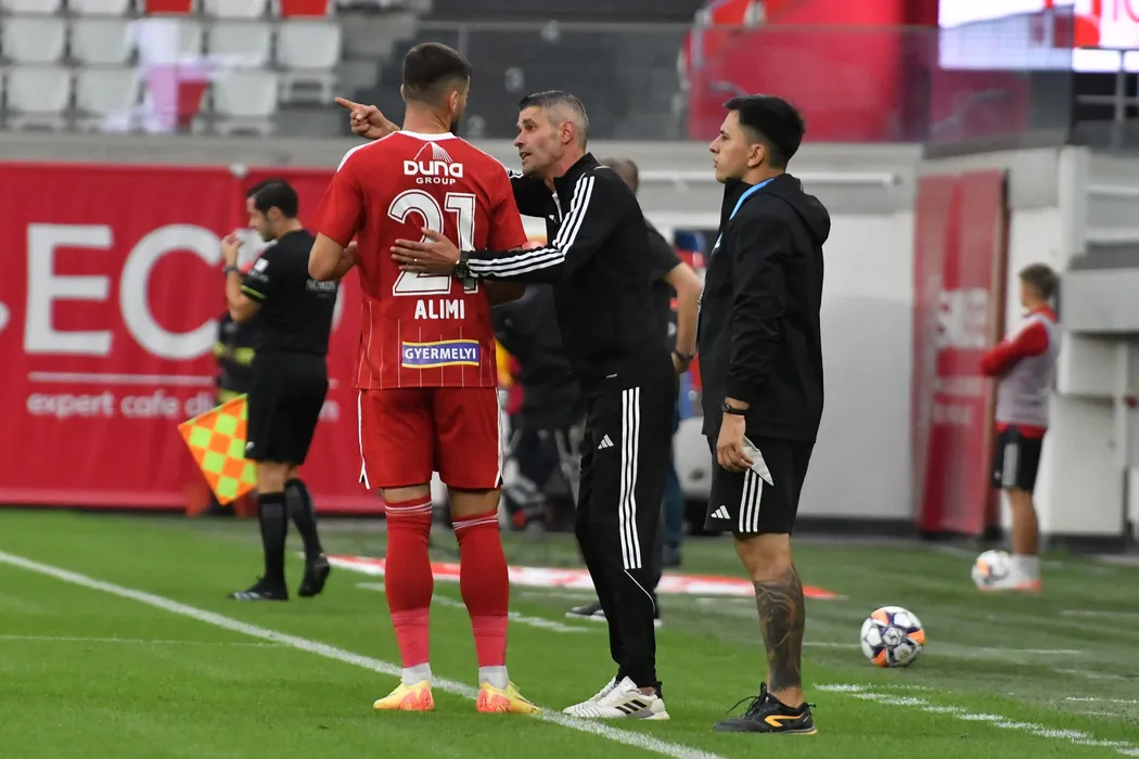 Dumitru Valentin Suciu dându-i indicații lui Isnik Alimi în meciul de fotbal dintre Sepsi OSK Sfantu Gheorghe și FC Botoșani, contând pentru SuperLiga Superbet, desfășurat pe Stadionul SEPSI Arena OSK din Sfântu Gheorghe, vineri 13 septembrie 2024. © FOTO: Bogdan BALAS/SPORT PICTURES