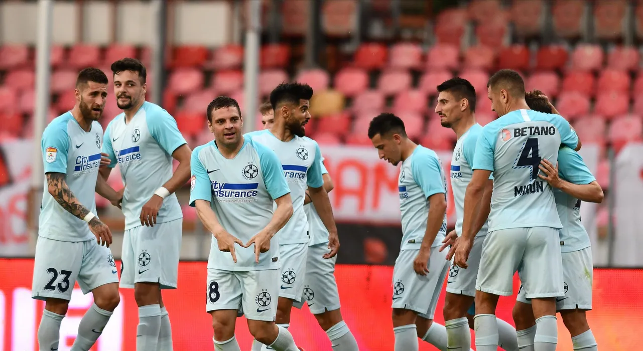 Bucurie stelista cu Ovidiu Popescu, Lucian Iulian Cristea, Ionut Vina, George Andrei Miron, Olimpiu Morutan, Adrian Popa si Adrian Petre in meciul de fotbal dintre Dinamo Bucuresti si FCSB, contand pentru turul semifinalei Cupei Romaniei, disputat fara spectatori pe Stadionul Dinamo din Bucuresti, joi 25 iunie 2020. © FOTO:Razvan Pasarica/SPORT PICTURES