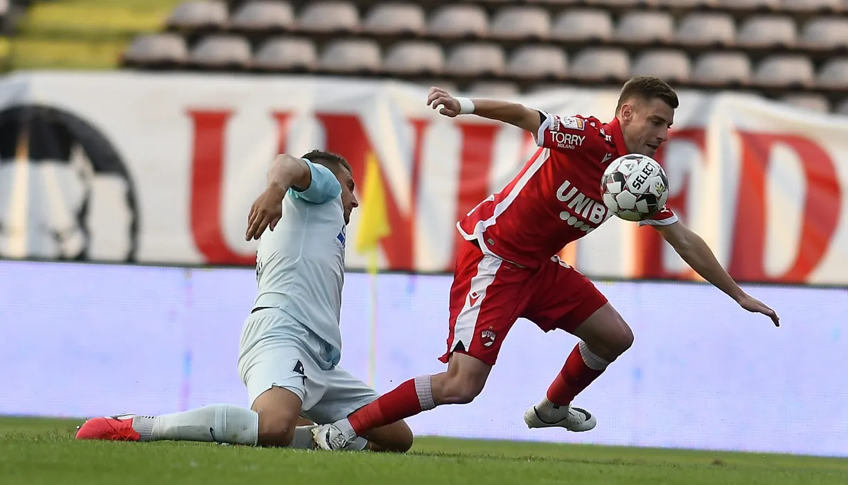 George Andrei Miron si Valentin Marius Lazar in meciul de fotbal dintre Dinamo Bucuresti si FCSB, contand pentru turul semifinalei Cupei Romaniei, disputat fara spectatori pe Stadionul Dinamo din Bucuresti, joi 25 iunie 2020. © FOTO:Razvan Pasarica/SPORT PICTURES