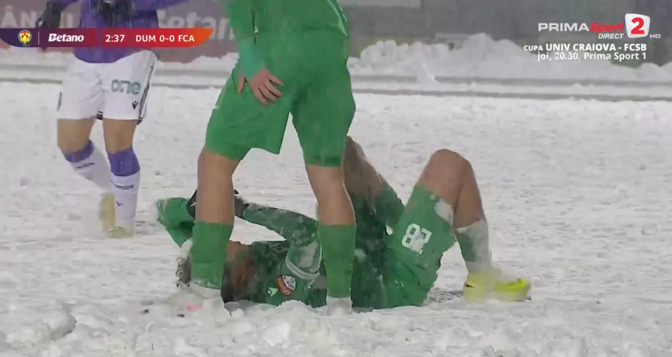 Se întâmplă în România! Imagini uluitoare: zăpadă uriașă pe teren la meciul din Cupa României!