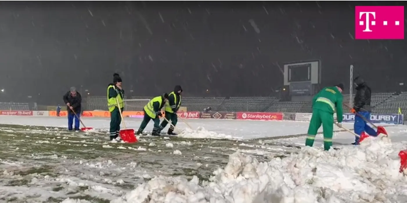FC Argeș – FCSB, meci pe un teren plin de zăpadă! Toni Petrea a răbufnit: „Nu este ceva normal!”