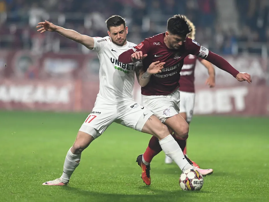 Mihai Ionut Butean si Cristian Ionut Sapunaru in meciul de fotbal dintre Rapid Bucuresti si FC Hermannstadt, contand pentru Superliga Superbet, desfasurat pe Stadionul Rapid Giulesti din Bucuresti, sambata 4 martie 2023. © FOTO:Razvan Pasarica/SPORT PICTURES
