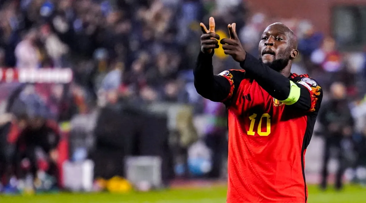 BRUSSELS, BELGIUM - NOVEMBER 19: Romelu Lukaku of Belgium celebrates after scoring his teams fourth goal during the Group F - UEFA EURO 2024 European Qualifiers match between Belgium and Azerbaijan at King Baudouin Stadium on November 19, 2023 in Brussels, Belgium. (Photo by Joris Verwijst/BSR Agency/Getty Images)