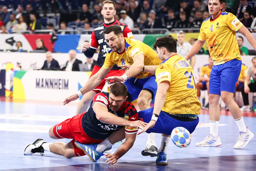 Robert Mihai Militaru în meciul de handbal masculin dintre Croația si România, contând pentru EHF EURO 2024, desfășurat în SAP Arena din Mannheim, marți 16 ianuarie 2023. © FOTO: Sorin PANĂ/SPORT PICTURES