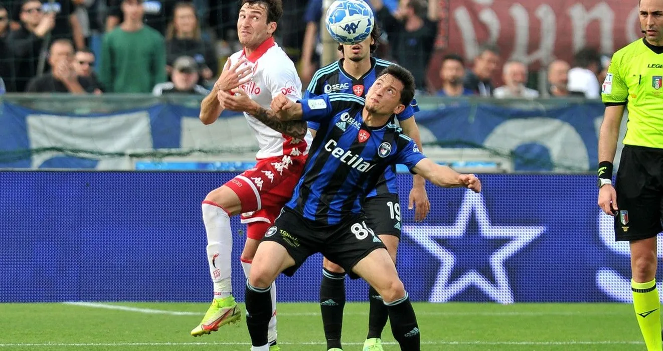 April 23, 2023, Pisa, Italy: Pisa, Italy, Arena Garibaldi, April 23, 2023, Olimpiu Morutan (Pisa) Leonardo Benedetti (Bari) during AC Pisa vs SSC Bari - Italian soccer Serie B match.,Image: 771763904, License: Rights-managed, Restrictions: * Italy Rights Out *, Model Release: no