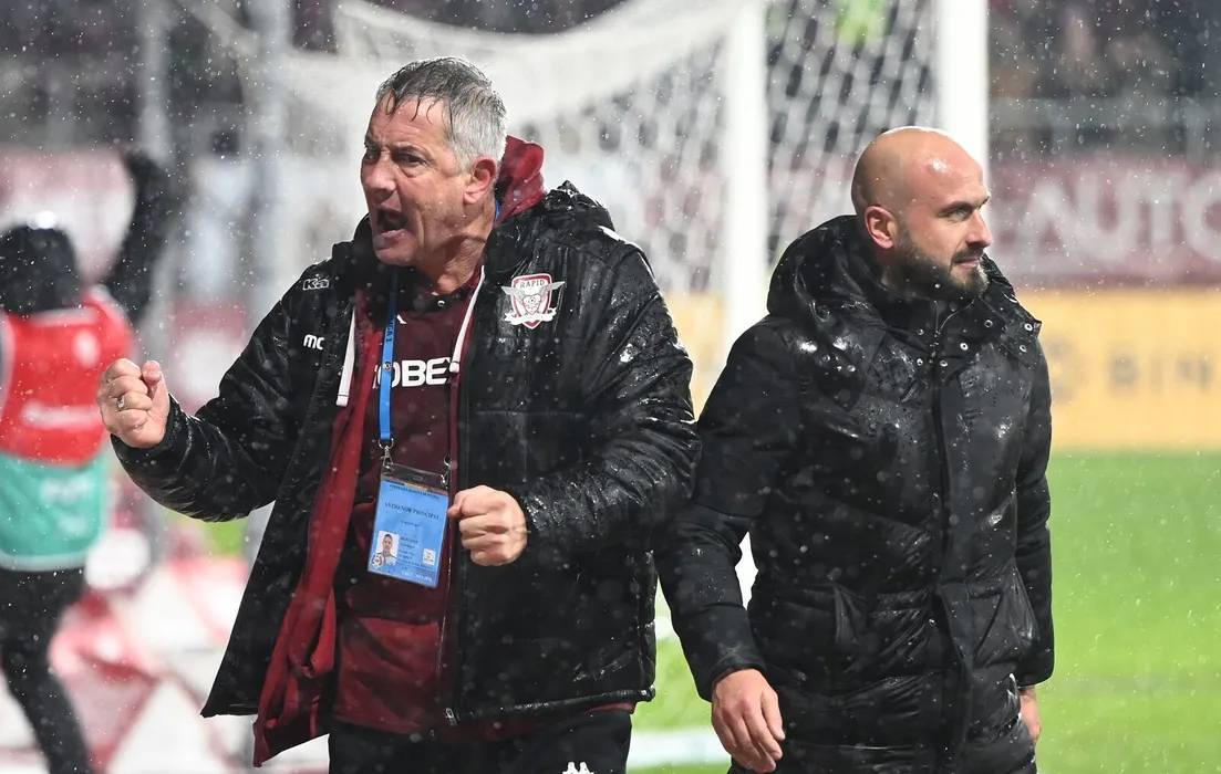 Cristiano Bergodi se bucura alaturi de Ionut Voicu dupa golul patru rapidist marcat in meciul de fotbal dintre Rapid Bucuresti si FC U Craiova, din cadrul Superligii Superbet, desfasurat pe Superbet Arena-Giulesti din Bucuresti, vineri 19 ianuarie 2024. © FOTO:Razvan Pasarica/SPORT PICTURES