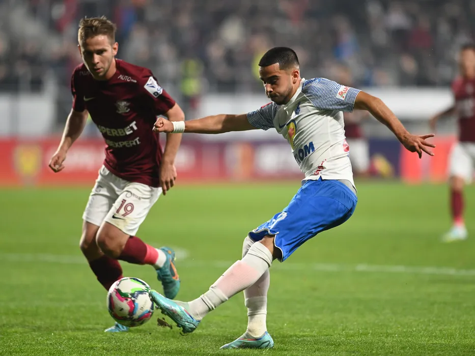 Phillipe Razvan Onea si Enes Sali in meciul de fotbal dintre Rapid Bucuresti si Farul Constanta, contand pentru Cupa Romaniei, desfasurat pe Stadionul Rapid Giulesti din Bucuresti, miercuri 9 noiembrie 2022. © FOTO:Razvan Pasarica/SPORT PICTURES