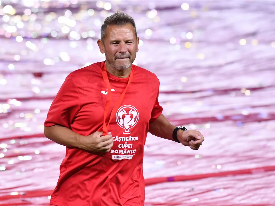 Thomas Neubert pozeaza alaturi de trofeu dupa castigarea Cupei Romaniei in urma meciului de fotbal impotriva celor de la Sepsi OSK Sfantu Gheorghe, disputat fara spectatori pe Stadionul Ilie Oana din Ploiesti, miercuri 22 iulie 2020. © FOTO:Razvan Pasarica/SPORT PICTURES